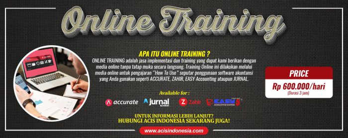 ONLINE TRAINING adalah jasa implementasi dan training yang dapat kami berikan dengan